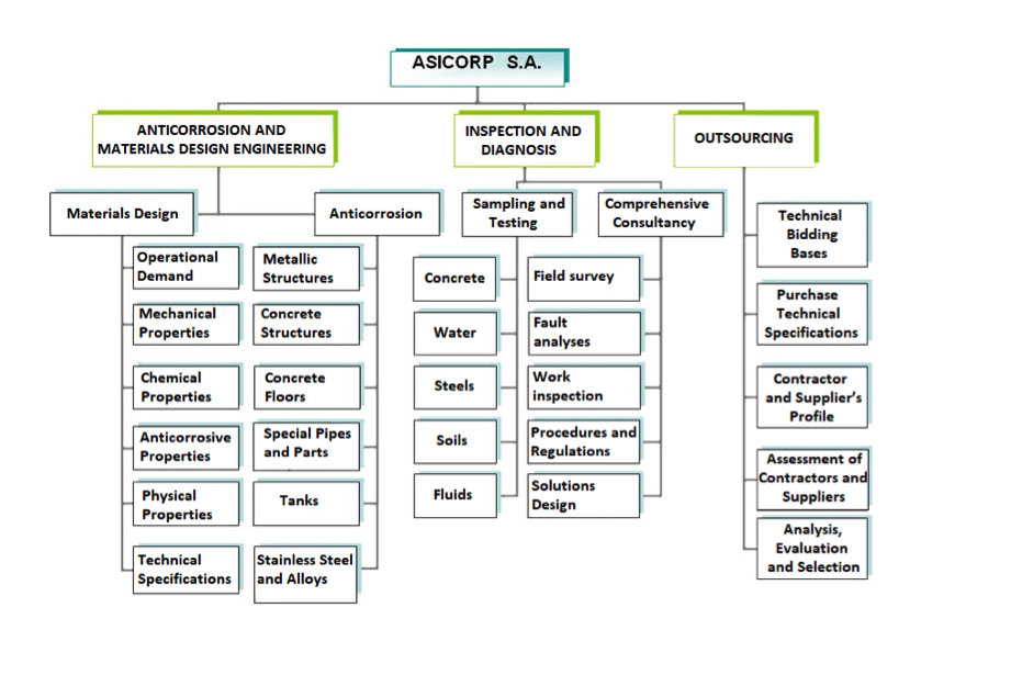 The services in this area include mainly fault analyses, evaluation of the type, degree and progress of corrosion in metal and concrete structures, diagnosis of the state of the coatings, inspection and quality control of the paint job, monitoring and permanent field advice on work and manufacturing activities, whether for new projects or maintenance work. The quality and work methodology is based in the application of norms and standards established according to each project, consider the general and detailed analysis of a task and the approach of solutions that allow the achievement of the final objective with optimal results and in a safe condition.